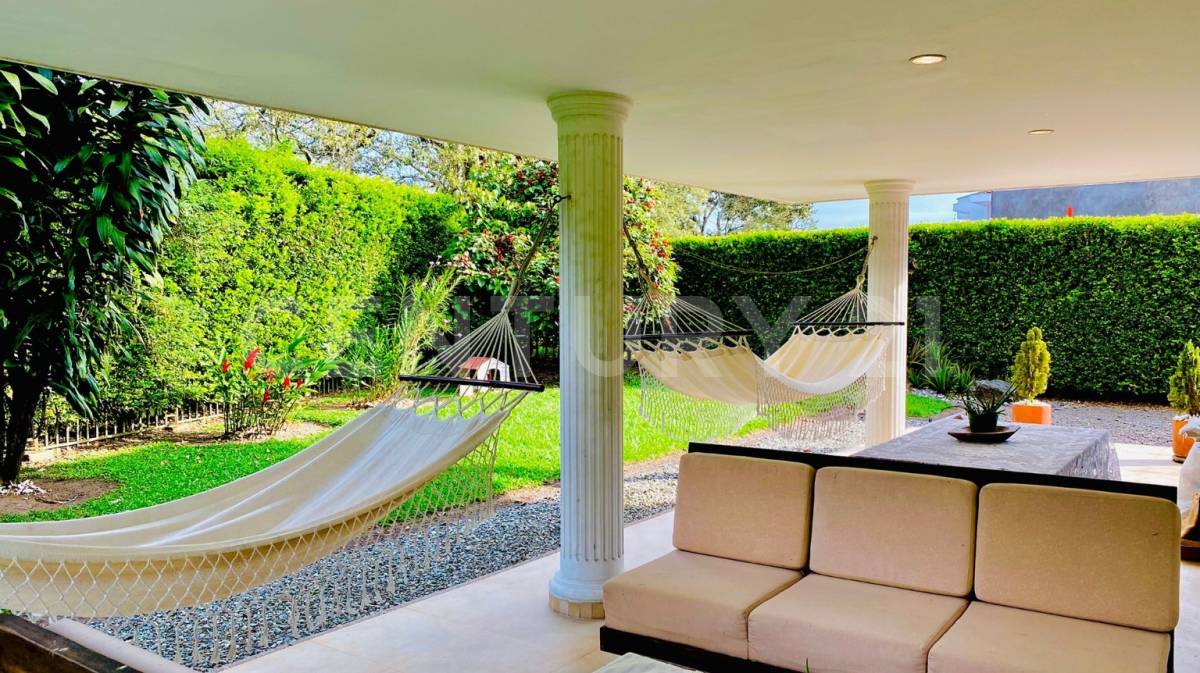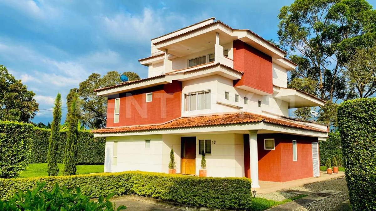 La propiedad cuenta con cocina integral, tipo terreno regular, edo. conservación muy bueno, numero de casas 17, calidad de la construcción alta, área de oficinas 1, regaderas 5, tipo de piso marmol, ambientes 5, acceso para discapacitados, agua caliente, antena parabólica, balcón, cámaras de vigilancia, estufa a gas natural, horno a gas natural, juegos infantiles, parqueadero descubierto, parqueadero visitantes, portería, salón social, jardín, piso en baldosa/mármol, citófono, sobre vía principal y portería/vigilancia
